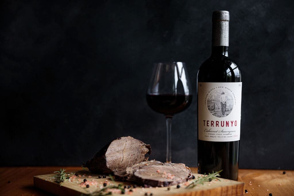 Terrunyo Cabernet Sauvignon is captivating with its aromas of blackcurrant, cassis, chocolate, pepper, and graphite. With age, and depending on the characteristics of the harvest, notes of plums, dried plums, cedar, spices, and coffee are enhanced. It is a great-bodied wine with a very expressive bouquet, making it an ideal companion for red meats such as steak, hamburgers, goulash, stew, lamb, and even duck. Its dark fruit notes also pair well with a number of dark sauces, such as plum, blueberry, wine reductions, or mushrooms.
