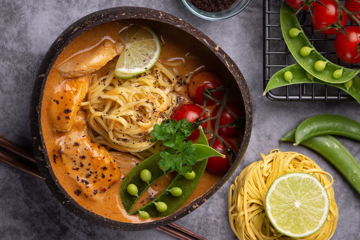 Uma das gastronomias mais complexas do mundo é a tailandesa. Suas receitas extremamente diversas são capazes de proporcionar ao paladar, em separado ou todos juntos ao mesmo tempo, os sabores doce, salgado, ácido, amargo e umami. Além dos ajís picantes, ervas, especiarias aromáticas, raízes e leite de coco dão origem a seus curries, com muita profundidade e camadas de sabores em cada prato. Por isso se costuma dizer que é difícil encontrar a harmonização ideal. Mas vamos considerar que, tradicionalmente, os tailandeses não costumam beber vinho com a comida. Mas você acabou de pedir um pad thai ou um curry verde de frango… Não se preocupe. Como a maioria dos pratos são à base de frutos do mar, frango ou porco, vinhos brancos ou rosés são excelentes opções. Ou se os pratos que você pediu são muito picantes, é melhor um vinho mais doce e que seja servido frio, como o Riesling e o Gewürztraminer, para mitigar o caráter picante e as especiarias. Por outro lado, para pratos menos condimentados como a salada de papaia verde ou o arroz frito, o Rosé Concha y Toro, com seu final fresco e mineral, é uma grande companhia também.
