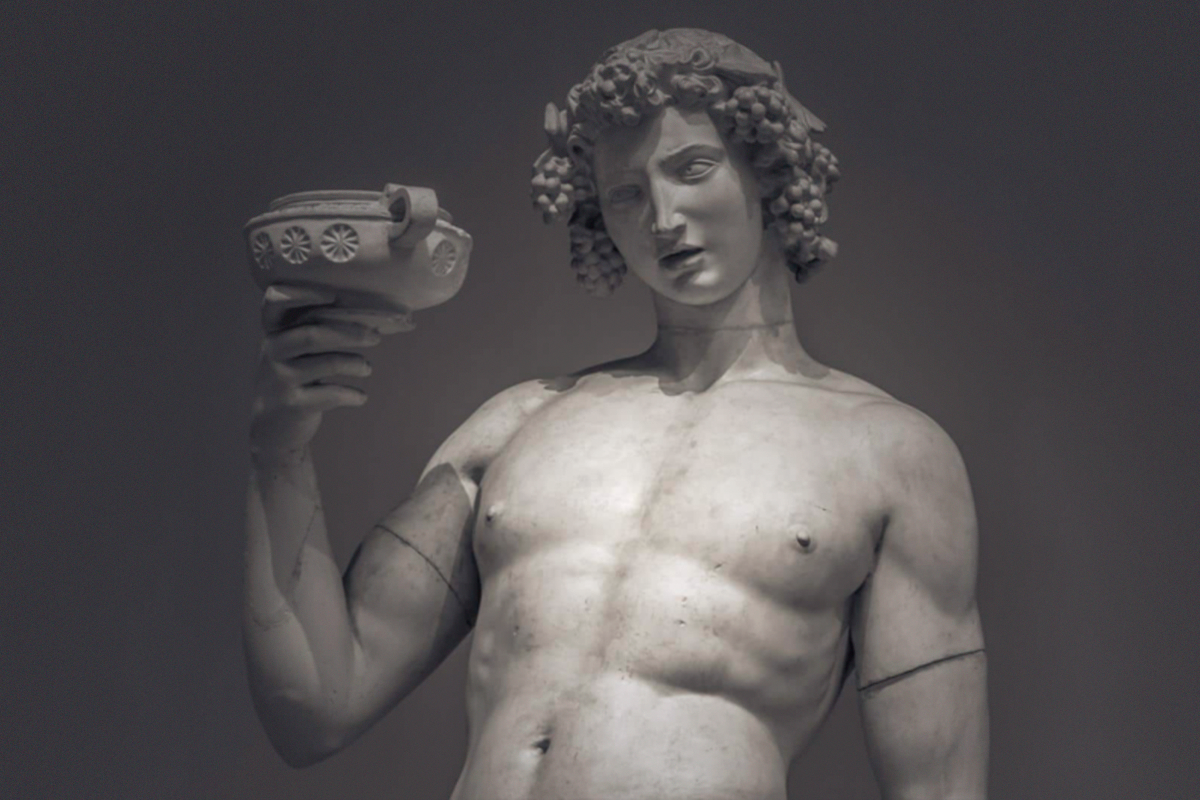 Na mitologia grega, entretanto, o deus da fertilidade, da vegetação e do vinho era Dionísio. Teria sido ele o descobridor da viticultura e quem a levou para outros continentes, como a Ásia. Na Grécia, as primeiras festividades da vindima eram muito importantes. Nelas, a uva colhida era pisada e, em seguida, o primeiro vinho era provado, uma oferenda ao deus Dionísio em celebrações que podiam durar até quatro dias. Danças, cantos, bastante descontrole e vinho, esta teria sido a combinação que deu como resultado uma das artes mais importantes: o teatro.