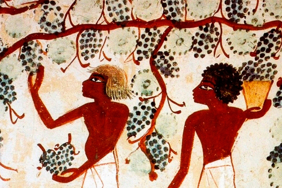 Embora a uva não seja nativa do Egito, a cultura egípcia foi uma das primeiras a dominar todo o conhecimento para a elaboração do vinho. Este era um ofício ilustre, dedicado à elaboração de caldos para nobres abastados e para rituais de passagem para a morte, oferendas aos deuses e, evidentemente, para ser apreciado em festas.