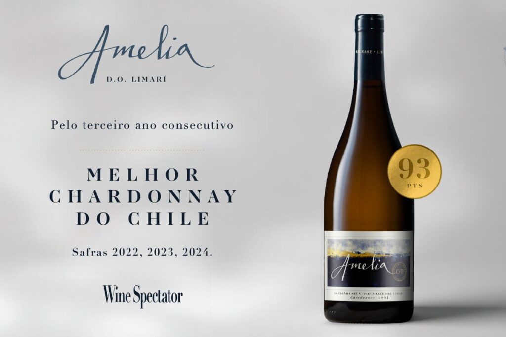 A safra 2024 de Amelia Chardonnay recebeu, pelo terceiro ano consecutivo, uma pontuação excepcional de 93 pontos pela prestigiada publicação norte-americana especializada em vinhos, Wine Spectator, consolidando-se como o Chardonnay mais bem avaliado do Chile.