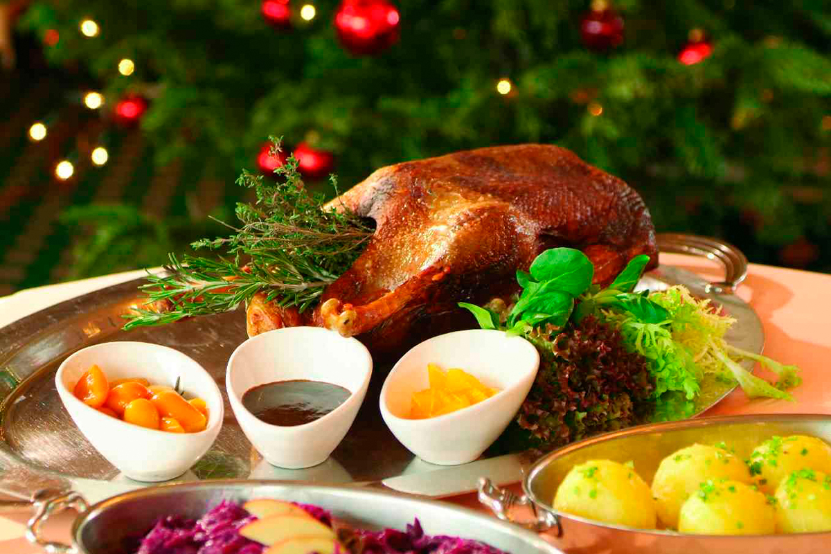 O prato germânico mais tradicional no Natal é o ganso assado recheado com porco, ameixas secas e castanhas. Com os anos, esta receita foi evoluindo e incorporando ingredientes como a maçã e alternativas de carnes como pato ou coelho. Sempre com pele crocante e carne suculenta, o prato é acompanhado por repolho roxo cozido com vinho tinto e especiarias, massa recheada ou bolinhos de batata (Kartoffelpuffer) e linguiças com maçã. Neste caso é necessário um vinho tinto mais encorpado e complexo, com uma acidez agradável e taninos proeminentes, como a cepa Blaufränkisch, da Alemanha e da Áustria. O Pinot Noir e o Carmenere são variedades parecidas com ela, de forma que o Terrunyo Carmenere seria um vinho perfeito para acompanhar este cardápio.
