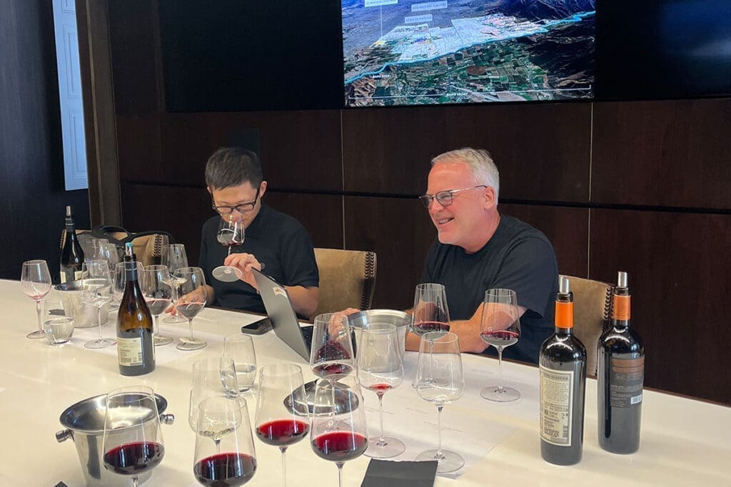 Entre as marcas degustadas por Suckling e Shuai, estão os vinhos do portfólio Luxury Brands da Viña Concha y Toro –Carmín de Peumo, Marques de Casa Concha Heritage, Amelia, Terrunyo e The Master–, além das marcas Marques de Casa Concha e Gran Reserva.