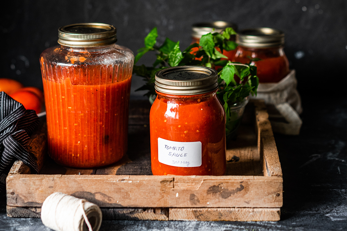Verão é sinônimo de tomates e, se você estiver levando tomates, aproveite e transforme-os em molho! Especialmente os tomates de fim de estação, extremamente maduros e a ponto de estourar. Que nada seja perdido. Lave, descasque e triture os tomates. À parte, refogue cebola e pimentão em uma panela com azeite de oliva, até ficarem bem cozidos. Acrescente o tomate, alho picado, manjericão, orégano e sal a gosto. Deixe cozinhar durante uma hora e peneire o molho para obter uma consistência aveludada. Corrija o sal e, se estiver muito ácido, você pode acrescentar um pouquinho de açúcar. De sabor intenso, este molho é perfeito para um prato de espaguete, como base para uma pizza ou para almôndegas, e harmoniza perfeitamente com o Casillero del Diablo Cabernet Sauvignon. Para guardar o molho, transfira-o para frascos de vidro esterilizados (fervidos em água por alguns minutos), deixando um dedo sem preencher. Feche-os, coloque-os dentro de uma panela, cubra-os com água e ferva-os por 20 minutos. Apague o fogo e deixe os frascos em repouso na panela até esfriarem. Guarde-os em um local fresco e seco.
