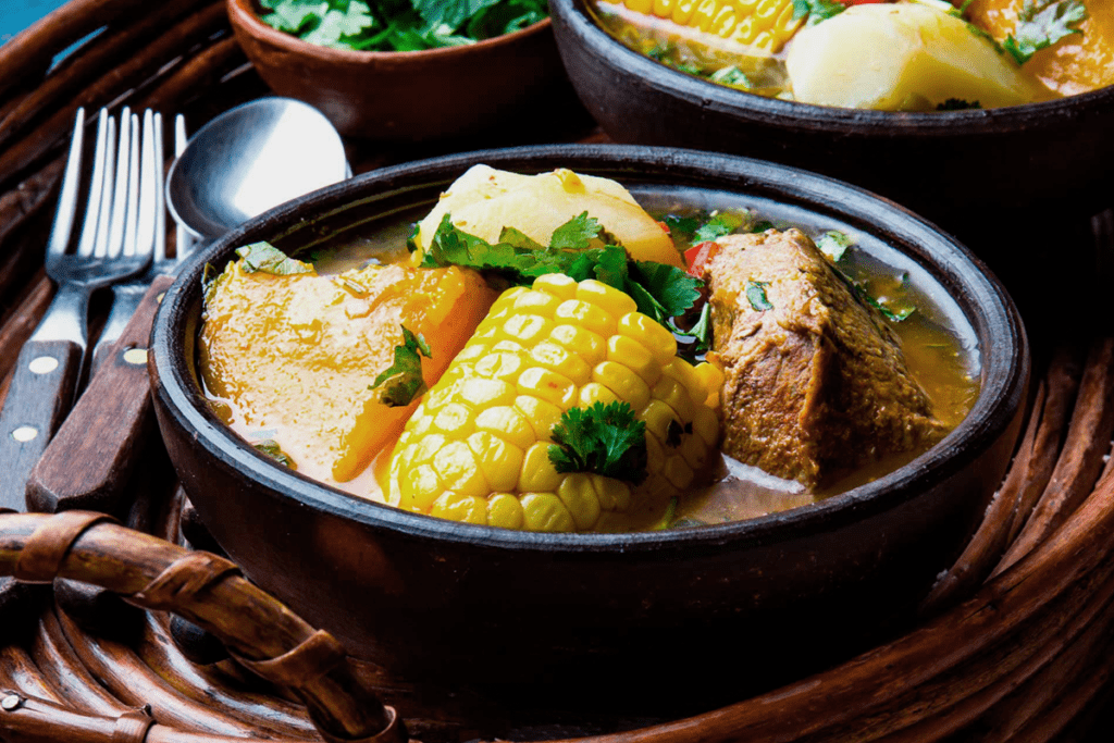 Em que consiste esse prato? É um caldo à base de carne de porco aromatizado com cebola, alho-poró, aipo e alho, que tem também cenoura, pimentão, batata, abóbora e o ingrediente que faz toda a diferença: a chuchoca.