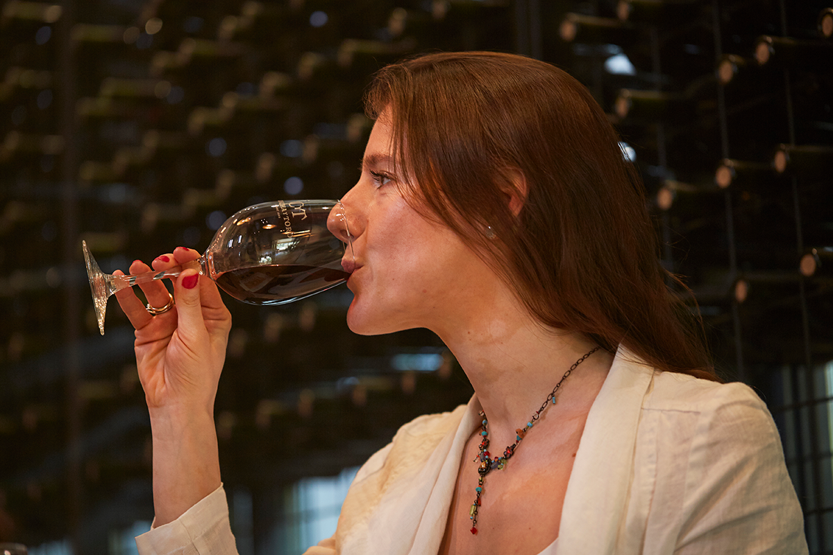 O segundo ponto, e um dos mais importantes para apreciar o vinho, está relacionado com o aroma. Ao mover a taça, fazemos com que o vinho entre em contato com o oxigênio, que por sua vez ajuda a liberar compostos voláteis que se desprendem do vinho e chegam ao nariz de maneira muito mais intensa que se não tivéssemos movido a taça. Agora, não precisa ficar movendo a taça o tempo todo. Após mover um pouco você pode parar, levar o nariz até a taça para sentir o aroma e então tomar o primeiro gole. Esta ação é especialmente boa para interpretar os aromas secundários dos vinhos mais complexos, aqueles que aparecem em uma “segunda camada” pois estão mais escondidos e requerem um pouco de ar para se desenvolver.