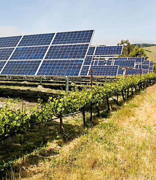 Por esta razão, na Concha y Toro estabelecemos uma forte proposta para avançar na incorporação de energias renováveis e já contamos com usinas solares instaladas em nossos campos de norte a sul, certificando-nos como uma empresa energeticamente responsável.