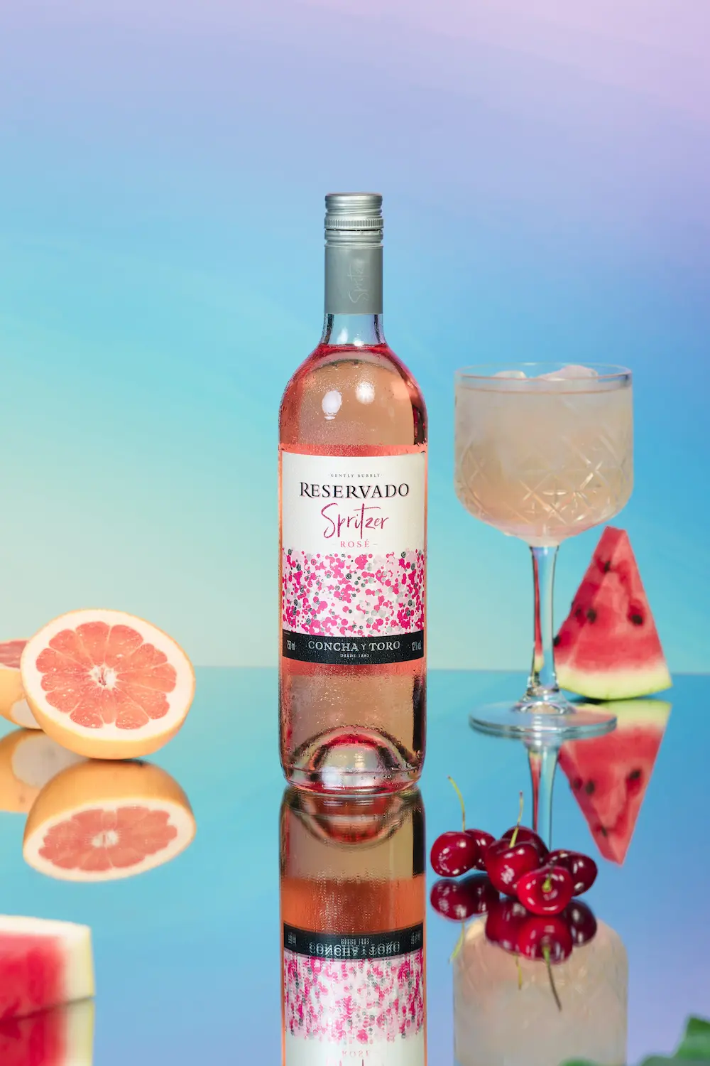 De color rosado suave y pálido, este Spritzer Rosé presenta aromas tropicales como piña y plátano maduro. En boca es fresco, con acidez balanceada y una dulzura persistente que lo hace ideal como aperitivo.